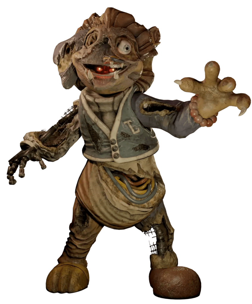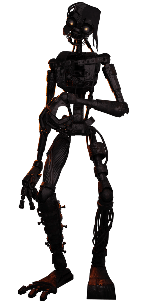 “The Mimic” is the third story in the Tales of the Pizzaplex #6: Nexie novel, written by Andrea Waggener. The Mimic is an endoskeleton animatronic that has the ability to “mimic” the actions of anything it sees. The Mimic was created by Edwin Murray to watch over his 4-year-old son, David.