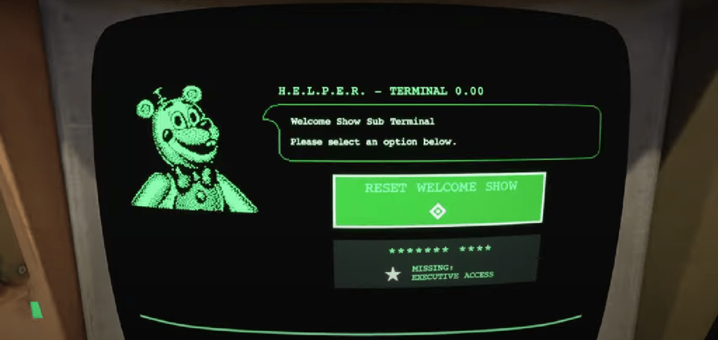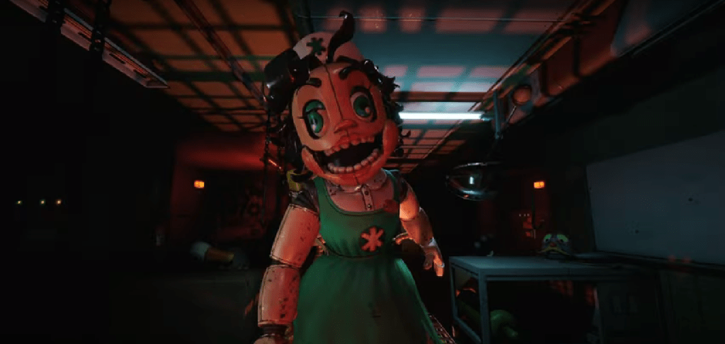 The nurse animatronic and the desk/mail animatronic appear brand new; however, it’s a theory that the nurse animatronic is known as the “Carnival Nurse” that spoke in Help Wanted 2 during the Helpy Repair mini game.