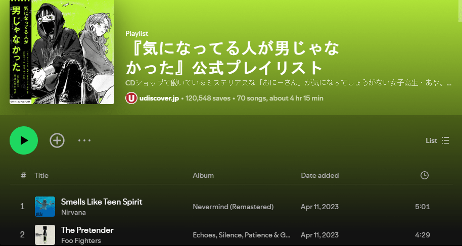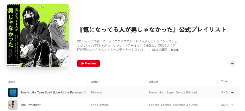 Sumiko Arai has released an official playlist on Apple Music and Spotify that features songs Mitsuki and Aya, the two main characters of the manga series, listen to.