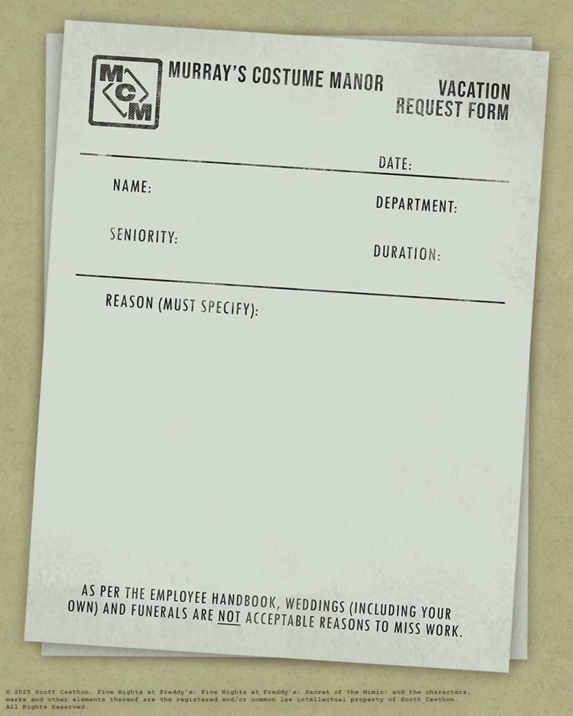 Enter the abandoned workshop of Murray’s Costume Manor and unravel the mystery left behind by the reclusive inventor, Edwin Murray. In Five Nights at Freddy’s: Secret of the Mimic, you’ll step into a world where every dark corner holds a secret and every flicker of light hints at an every-present threat. The Mimic, a prototype endoskeleton, can adapt to any costume and become any character, including what you fear most. Armed with only your wits, a few gadgets, and a heavily redacted corporate briefing, you’ll attempt to retrieve Fazbear’s prized prototype technology while grappling with cryptic clues and a relentless shadow determined to dispatch all unwanted company.